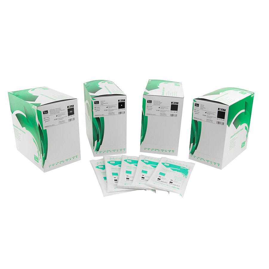 - High adhesive capacity prevents the fenestrated drape from sliding during surgery
